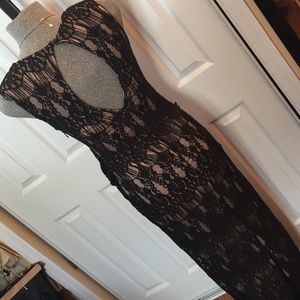 Hi @mjbjah 🤓 Thank you for visiting my closet this dress is really gorgeous but won the first time I got this is looking on the Internet what it supposed to look like. I had The same thought like yours that the dress has rip or something but it doesn't have. It's just the way it is. You can look up ratio and glow lace black dress on Google and it will pull up.