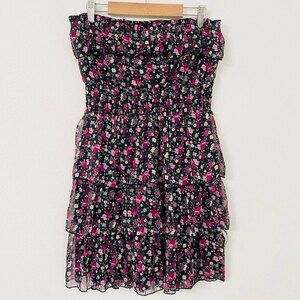 Rachael & Chloe Floral Ruffle Mini Dress Size M Strapless Bohemian Dress