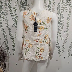 Rachael Rachael Roy Linen Floral Tank Top Sz S