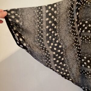 Sheer black and white flowy blouse with elastic at the bottom