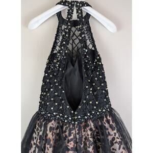 Rachel Allan 4072 Animal Print Beaded Halter Cocktail Prom Dress Tulle Black 8
