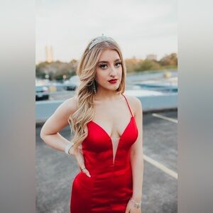 This couture gown radiates luxury and confidence. Ideal for pageants, red-carpet events, or black-tie occasions. The rich burgundy tone photographs beautifully under evening lighting.