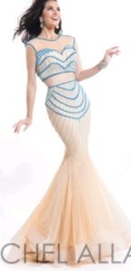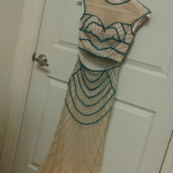 Never worn or altered, size 0, 2 piece, mermaid. The beads are loose at the waist, from being too small when tried on by someone not a size 0. I will either get them reinforced by a seamstress, or take a lower offer. A great deal for this awesome dress. Sells for $498