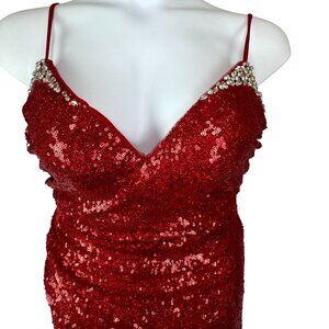 Rachel Allan Red Sequin Floor Length Gown Lace-up Back Dress Size 00 NWT 70517
