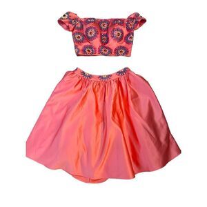 Rachel Allan peach beaded two piece formal prom dress sz 2