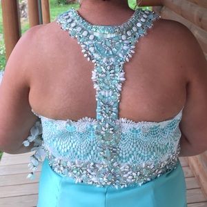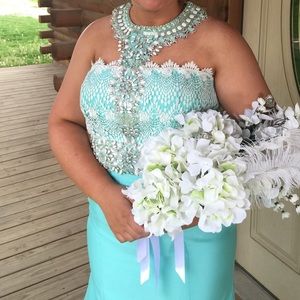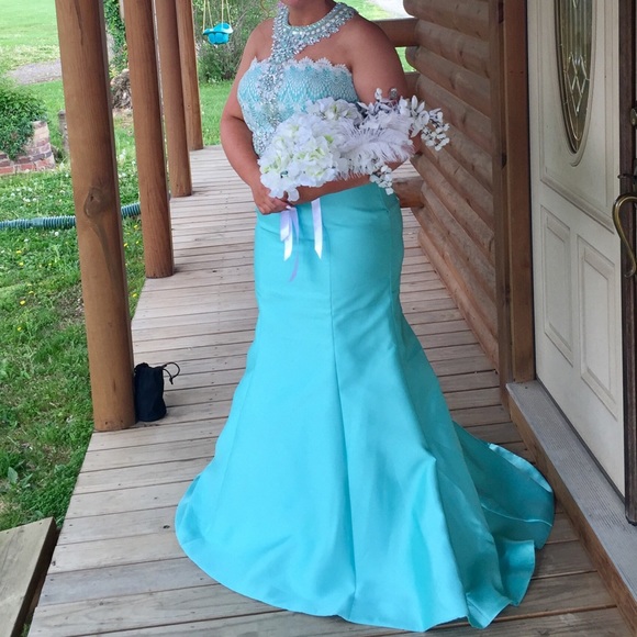 Aqua blue Rachel Allen PROM dress in a size 16. Excellent condition only worn one time. Alterations have been made. Lowered from $300!