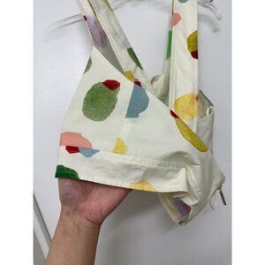 This Rachel Antonoff Antonia Crop Top is in great condition! Features the Filthy Martini print (rainbow olives printed on a cream background, like polka dots). Cotton, short cropped length, square neckline, sleeveless.