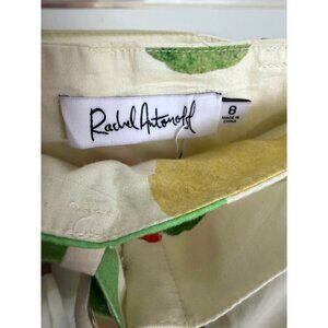 This Rachel Antonoff Vinnie Skirt is in great condition! Features the Filthy Martini print (rainbow olives printed on a cream background, almost like polka dots). Cotton, short mini length (has been shortened), high rise/high waist, pleated, belted. The olives naturally have a watercolor/hand-drawn effect. There is a tiny mark on the front, and there is some minor seam stretching on the pleats.