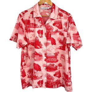 Rachel Antonoff James Shirt Tony Soprano Toile Pink Short Sleeve Button Size M