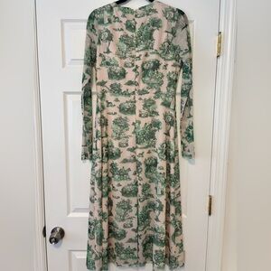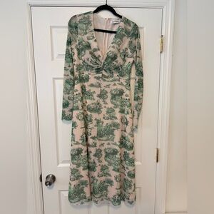 Long sleeve mesh v-neck midi dress with twist front detail -Invisible back zip closure -Fully lined, excluding sleeves