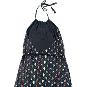 Features the "Rose Grid" print colorful, small flowers / floral on a black background