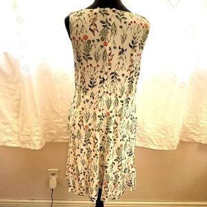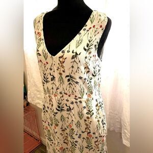 EUC. Soft, lightweight fabric with a floral + greenery print. Sleeveless, v-neck, and fitted at the waist. Hidden back zipper. Perfect for spring and summer.