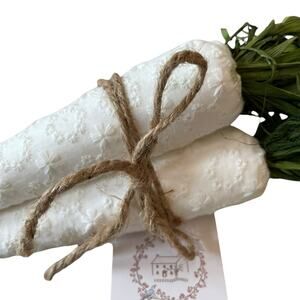 NEW Rachel Ashwell Farmhouse Fabric Carrots White Eyelet Easter Decor Set of 3