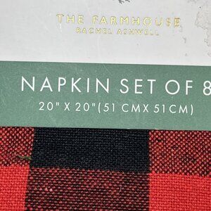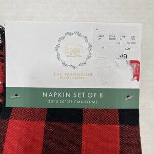 Rachel Ashwell Farmhouse Napkins Buffalo Plaid Red Black Fringe Set Of 8 Holiday