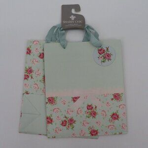 Rachel Ashwell Shabby Chic 2 Gift Bags Pink Aqua Roses Floral Flower Bow NEW NWT