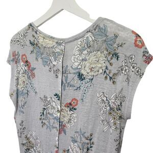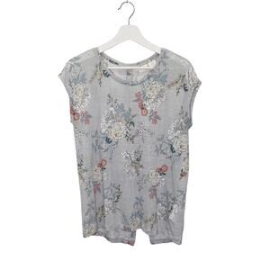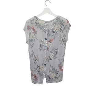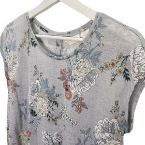 Rachel Ashwell Shirt Women Size Medium Blue/Gray Floral Linen Top Button Back