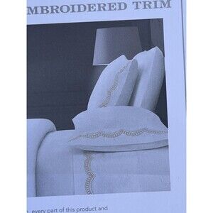 Rachel Ashwell Standard Pillowcases WHITE COTTON Tan EMBROIDERED Trim New