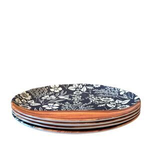 Rachel Ashwell Wood Grain Blue Floral Melamine Dinner Plates 11" Set of 4 New