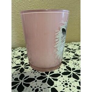 Rachel Brown’s adorable llama on a pink glass candle holder.