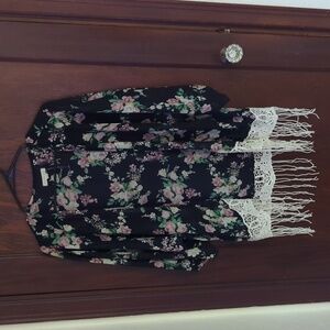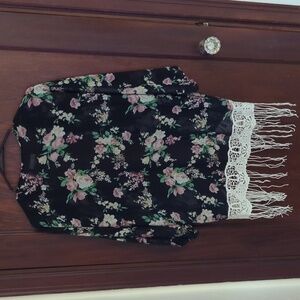 Rachel & Chloe Navy Floral Fringe Open Bohemian Festival Shawl Size Small