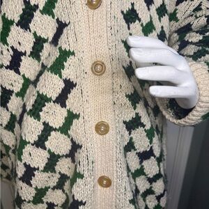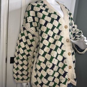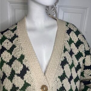 Rachel Comey Alpaca wool Sweater Oversized Size Large green white color Oversized V-neck chunky cardigan in good used condition.