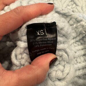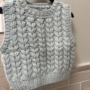 This is an adorable, chunky, cropped sweater vest from Rachel Comey. It is hand-knit in an alpaca-wool blend Siglo Knit.