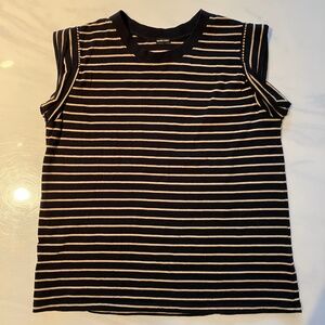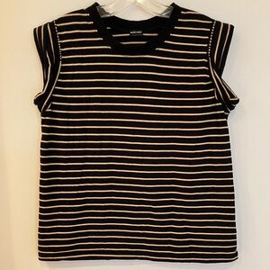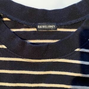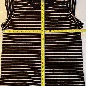 Elevate your wardrobe with the versatile Rachel Comey striped top, a piece that transcends occasions from a casual day out to a sophisticated work setting. Crafted in 100% cotton, this sleeveless tunic-style top, measuring 19.5" from pit to pit and 23" from neck to hem, is a comfortable and stylish choice for any season. Its classic neckline and regular fit flatter the silhouette, making it a timeless addition to your collection. With a striking black and beige striped pattern, this top is a statement piece that can be dressed up or down. It features a pullover design with a hint of stretch for ease of movement, ensuring both comfort and style are at hand. Care for this garment is effortless, as it is machine washable, making it a practical choice for everyday wear.