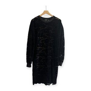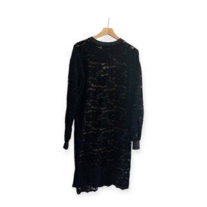 Long sleeve black midi dress in floral lace (feels like frocked material)