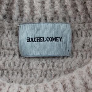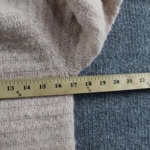 Elegant crew neck sweater. Features silver ring accents on cuffs and hem. Soft and textured knit.