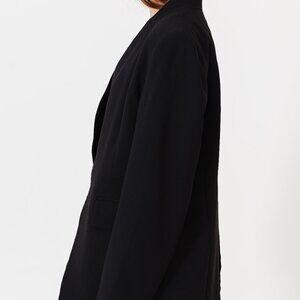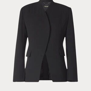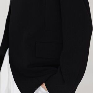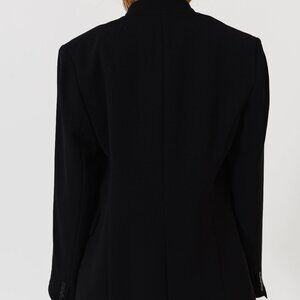 The Rachel Comey Dinely Blazer defies conventional tailoring with its rebellious collarless construction. Crafted from Georgette, this blazer commands attention through its deliberate structural tension and sleek surface that exudes boldness. The asymmetric front creates a provocative visual disruption that challenges traditional symmetry, while the strategic side flap pockets maintain the garment's audacious silhouette.