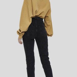 These jeans have amazing details – exposed gunmetal buttons, hammered top button, curved front pockets, waist slits above darting