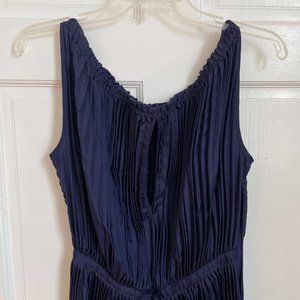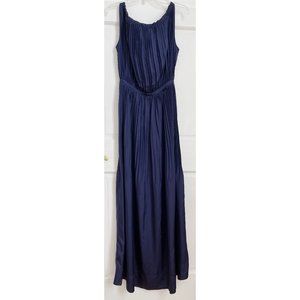 Gorgeous Rachel Comey Long Maxi 100% Silk Dress in Navy Blue, size 4. Dress features Mini Pleats throughout, keyhole at front, side zip closure, and tie waist. Really beautiful!