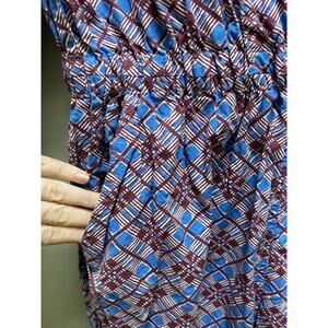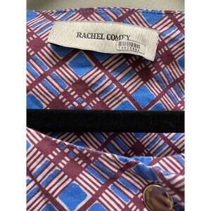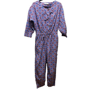 24” inseam Color: Purple and Blue Geometric print cotton (100% Cotton) Jumpsuit V-neck Three-quarter puff balloon sleeves Front button closure Ankle length Pockets Oversized sleeves and an elasticized waist give a relaxed-cool look to this Rachel Comey jumpsuit that's versatile, flattering, and effortless. OFFERS WELCOME