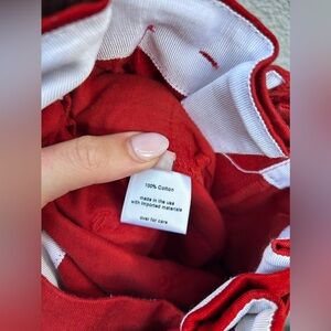 A pleated paper bag waisted pant in a vibrant orange-red. High waisted with a long wide leg and matching belt with silver buckle and grommets. The belted waist makes a secure fit that pairs perfectly with a tucked in top. The wide-set legs when cuffed, add weight and movement to the style. Four pocket styling. Concealed zipper fly and button closure. 100% cotton. Machine or hand wash cold, line dry. Made in the USA.