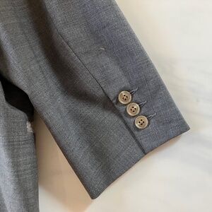 The Rachel Comey Short Wool Blazer in size 10 is a stylish and sophisticated choice for women. Made from a wool blend outer shell and lining, this solid gray blazer features a 3/4 sleeve and a hook & eye closure. Designed for a regular fit, this basic jacket is perfect for the winter, fall, and spring seasons. Handmade in the United States by the brand Rachel Comey, this blazer offers a timeless and versatile addition to any woman's wardrobe. It measures 22" from pit to pit and 24" from collar to hem. Excellent condition as shown in the photos.