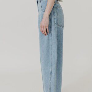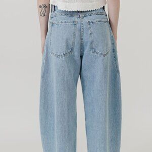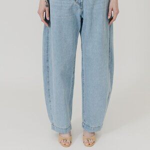 The Rachel Comey Keenan Jean offers a relaxed and stylish look with its high waist and sculpted wide-leg design. Made in Los Angeles with premium Japanese denim, these jeans provide a comfortable fit and quality construction.