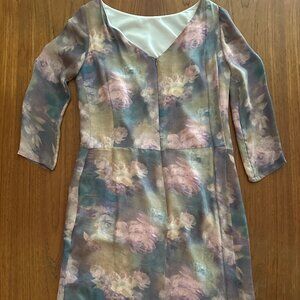 Rachel Comey lined silk dress with three quarter sleeves and a slit detail in front.