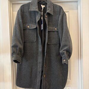 Cozy meets chic with this gray plaid longline shacket (shirt jacket). Features a classic collared neckline, button-down front, two flap chest pockets, and button cuffs. The versatile midweight design makes it perfect for layering over sweaters, tees, or dresses. Relaxed fit with a straight hemline gives it a modern, effortless look.