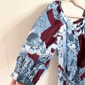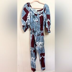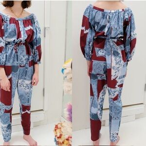 Rachel Comey solin jumpsuit Bordeaux size 6 off the shoulder scoop neck print