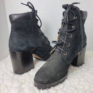Rachel Comey Rollickc Chunky Heel Boots Women's Size 7 Nubuck Black Suede