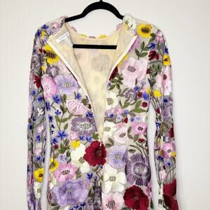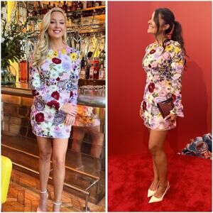 Rachel Gilbert Floral Embroidered Nya Long Sleeve Cocktail Mini Dress 6 US