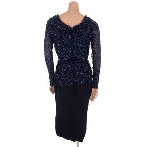 Rachel Gilbert Jamilla Layered Embellished Midi Dress Size 4 Blue $1750