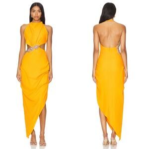 Rachel Gilbert Kylo Embellished Cutout Asymmetrical Yellow Maxi Dress Size 2 is brand new with tags! Featuring: