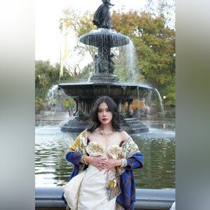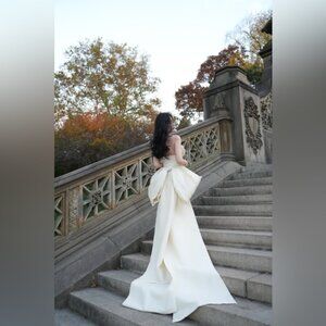 Only used once for photoshoot. Has been dry cleaned. In good condition. AU2/US4. The train is removable, the bow is not removable.