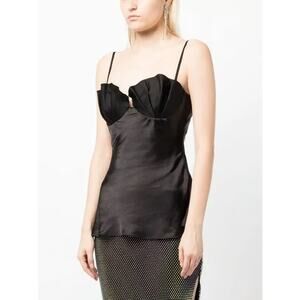 black satin finish pleat detailing 3D detailing bustier-style neckline concealed rear zip fastening adjustable spaghetti straps curved hem