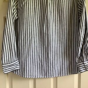 Rachel Hollis Woven Linen Striped Henley Shirt Grey White SZ 14
