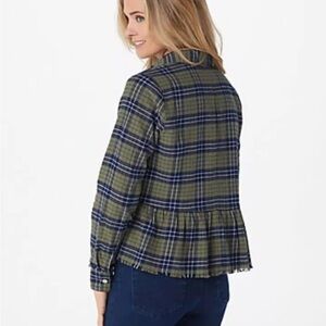 Rachel Hollis size 16 plaid peplum with raw edge and silver buttons
