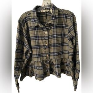 Rachel Hollis size 16 plaid peplum with raw edge and silver buttons. Used good condition