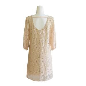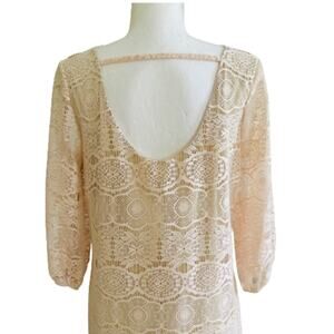 Rachel Kate Cream Pink Lace Overlay 3/4 Sleeve Scoop Neck Mini Dress Medium NEW