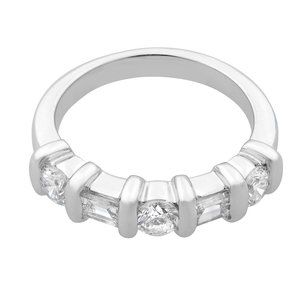 Rachel Koen Baguette Round Diamond Ring 14K White Gold 0.66cttw Size 5.5